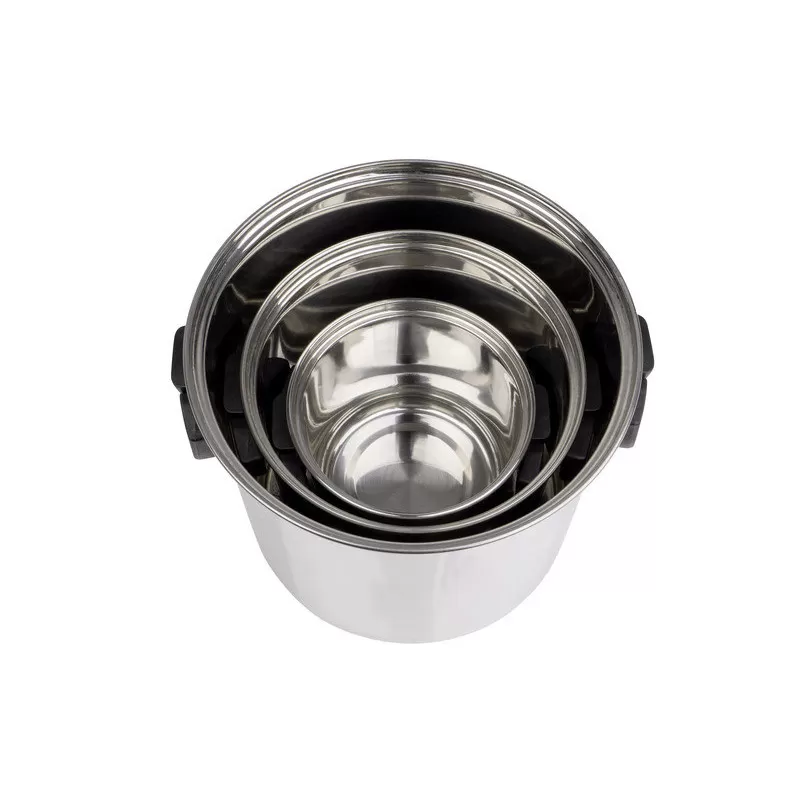 En acier inoxydable robuste et de qualité, les casseroles s’empilent facilement les unes dans les autres pour plus de commodités à bord. Les poignées de chaque coté vous seront très utiles pour manipuler les éléments.