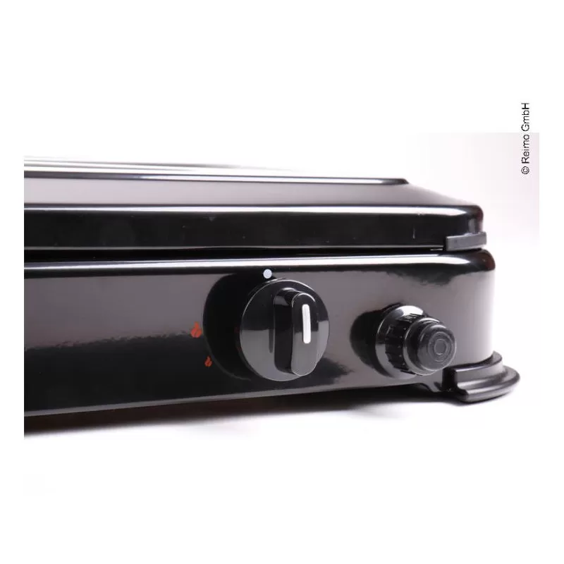 De coloris noir, il est à la fois très élégant et peu salissant. La sécurité thermocouple est un système d’arrêt du gaz automatique si aucun flamme n’est présente : pas de danger et pas de gaspillage. Conçu surtout pour le plein air en camping-car ou le camping, le couvercle de réchaud fait office de paravent. En option, la marque propose des pare-flammes latéraux (voir ici).