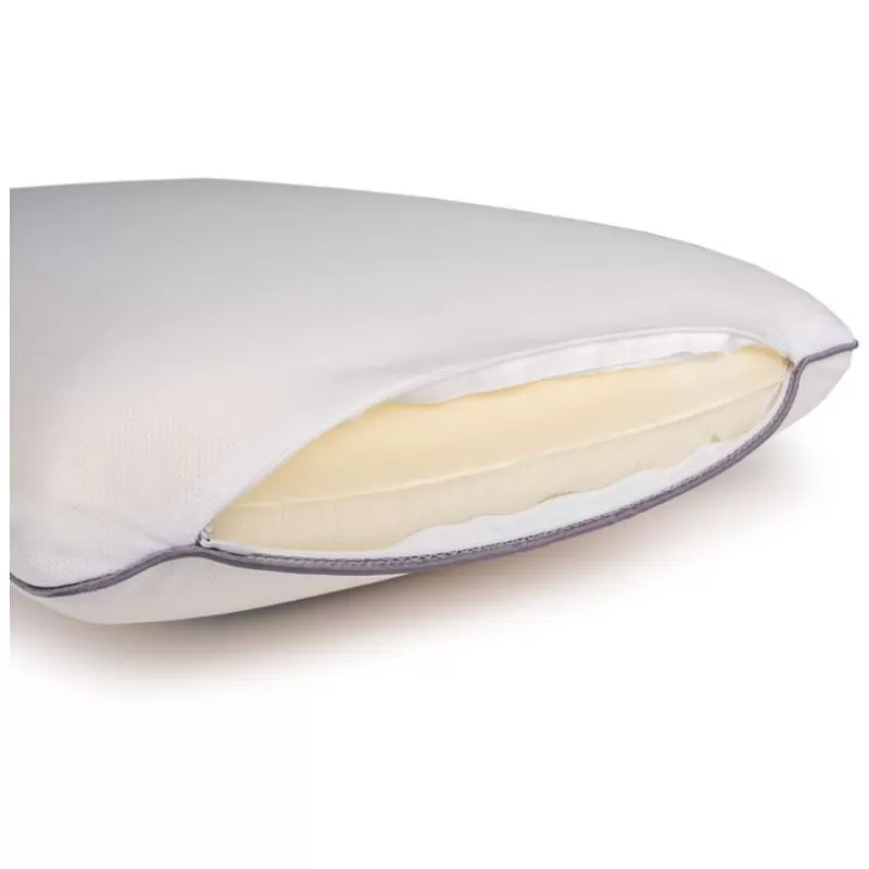 Oreiller de la marque CAMP4 fabriqué en mousse à mémoire de forme avec un revêtement gel d’un côté pour dormir paisiblement à l’intérieur de votre camping-car, fourgon aménagé ou bateau.