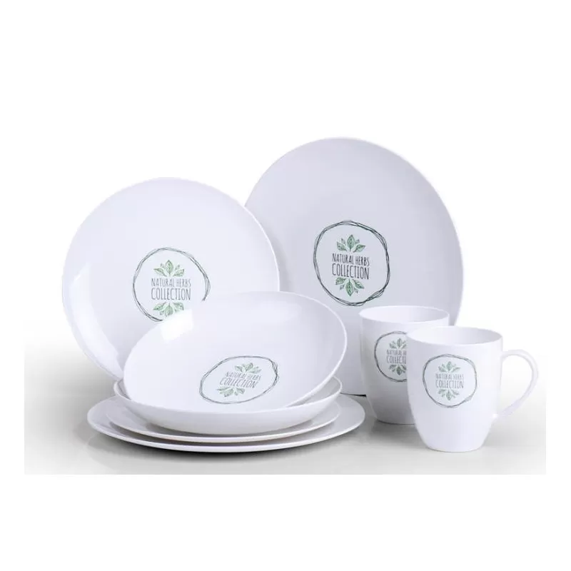 Ce kit vaisselle est composé de 8 pièces et convient parfaitement pour 2 personnes. Avec son décor nature et végétal, cette vaisselle est fabriqué à partir de matières premières renouvelables comme le blé, le maïs et est exempt de bisphénol A. Biodégradable, le set comprend 2 grandes et 2 petites assiettes ainsi 2 assiettes creuses et 2 mugs.