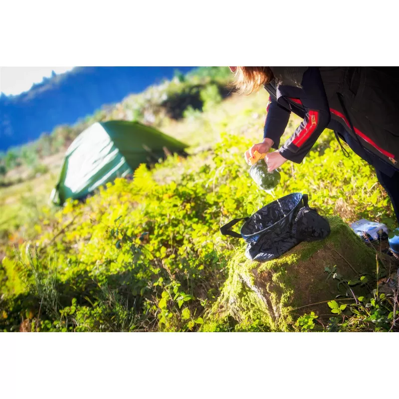 Matériel de camping et randonnée très pratique, cette bassine est pliable textile et ne prend que très peut de place une fois pliée facilitant grandement le rangement et le transport ! En plus, la célèbre marque matériel outdoor Ardennaise livre la bassine de camping avec un sac pour le stockage ! Fabriqué en polyester et PVC, elle a une capacité de 12 litres et est dotée de deux poignées textiles pour les côtés.