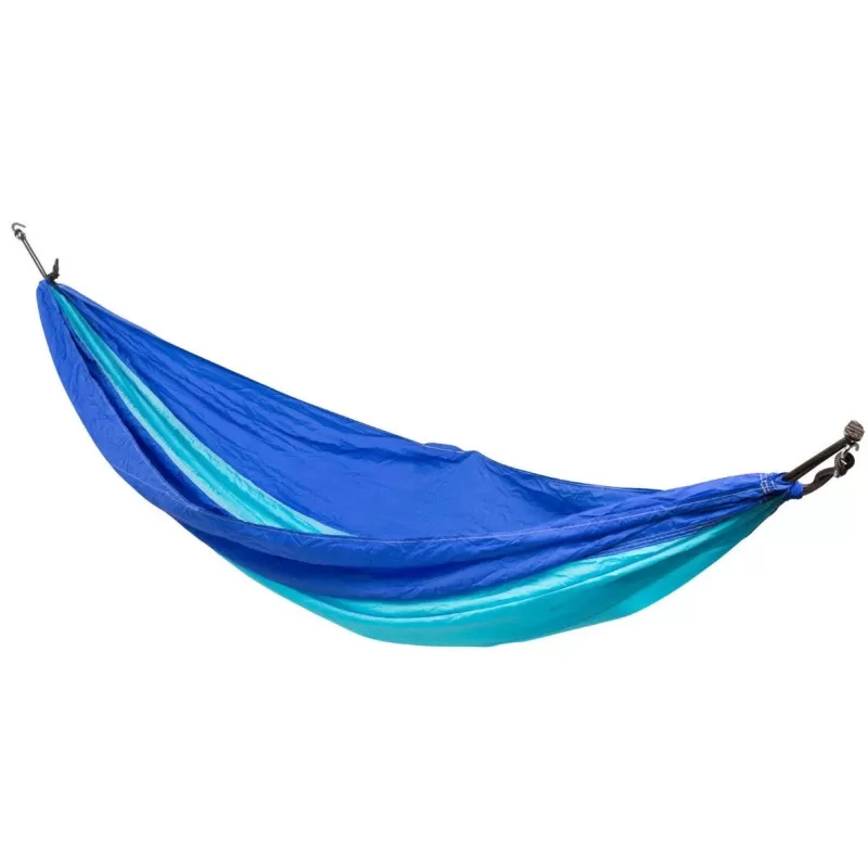 Proposé en bleu ou en vert, son design est dynamique. En standard, la marque Ardennaise CAO livre le hamac avec crochet S à chaque extrémité.