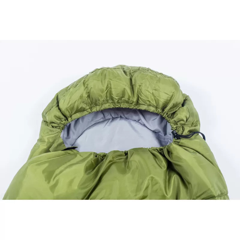 Duvet, sac de couchage « Confort » de CAO OUTDOOR avce capuche pour les adultes en camping, randonnée ou outdoor. Disponible en vert ou kaki, idéal pour les petit randonnée et trekking d’été petit prix.
