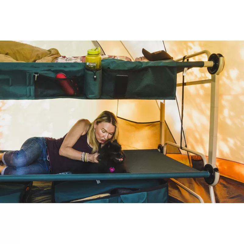 Le modèle L de DISC-O-BED est un lit de camp modulable pour camping capable de se transformer en lits superposés, en lits simples et en banquette !