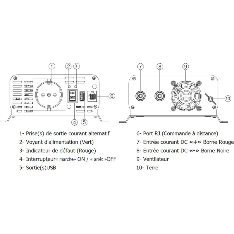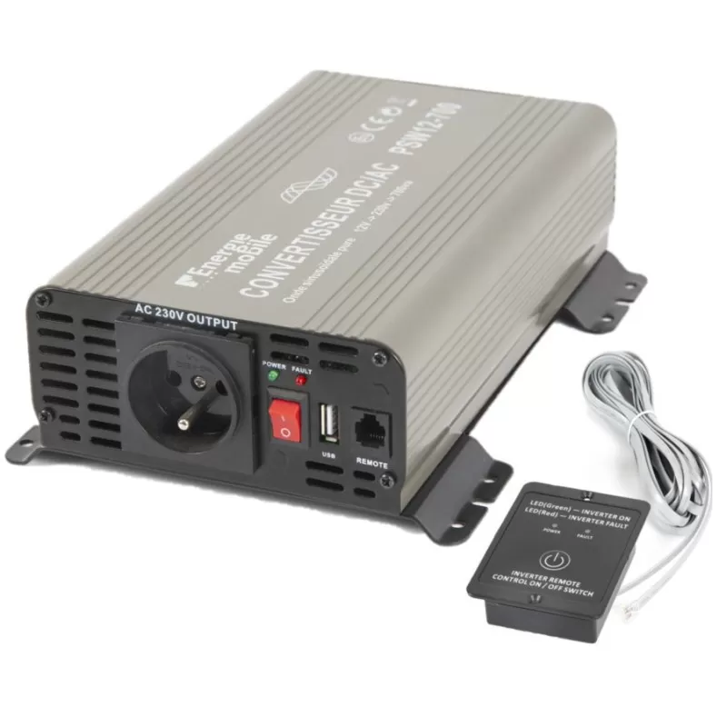 Convertisseur de tension puissance 700W à ondes parfaites pur sinus avec télécommande déporté en option, le meilleur rapport qualité prix pour le bateau et camping-car.
