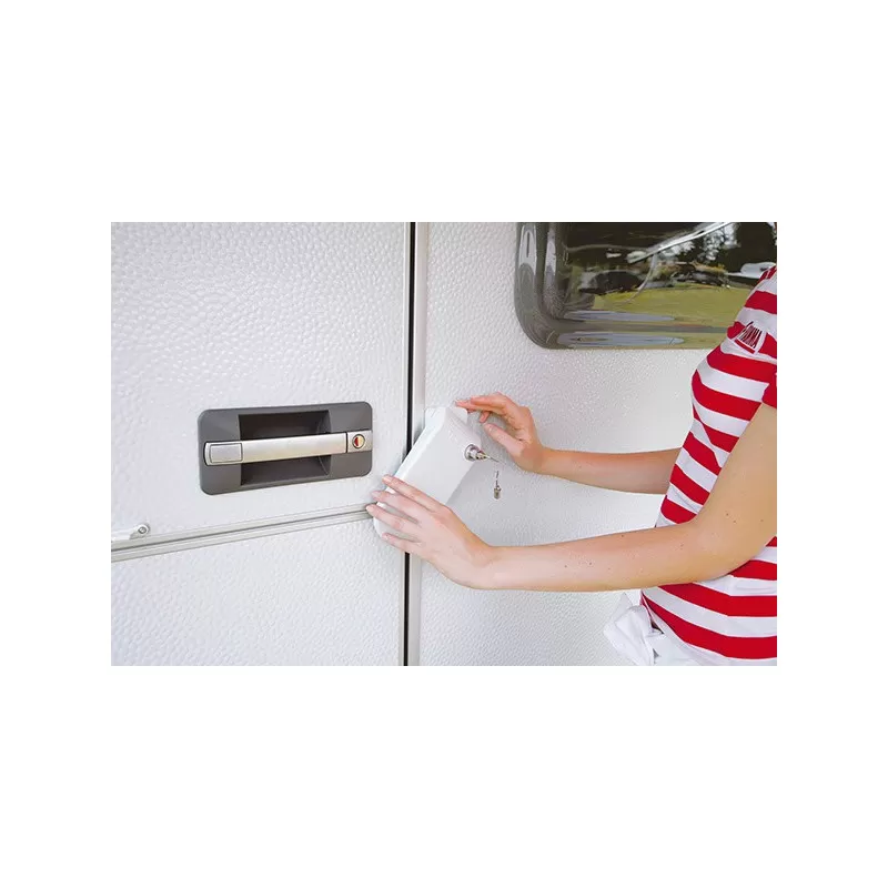 Le modèle Magnum du FIAMMA Safe Door est plus grand et permet de couvrir la serrure de la porte pour une plus grande protection contre le vol. Equipement pour camping-car de qualité, le système bloque-porte permet de verrouiller efficacement les portes. L’installation est simple et rapide et nécessite un perçage de la carrosserie.