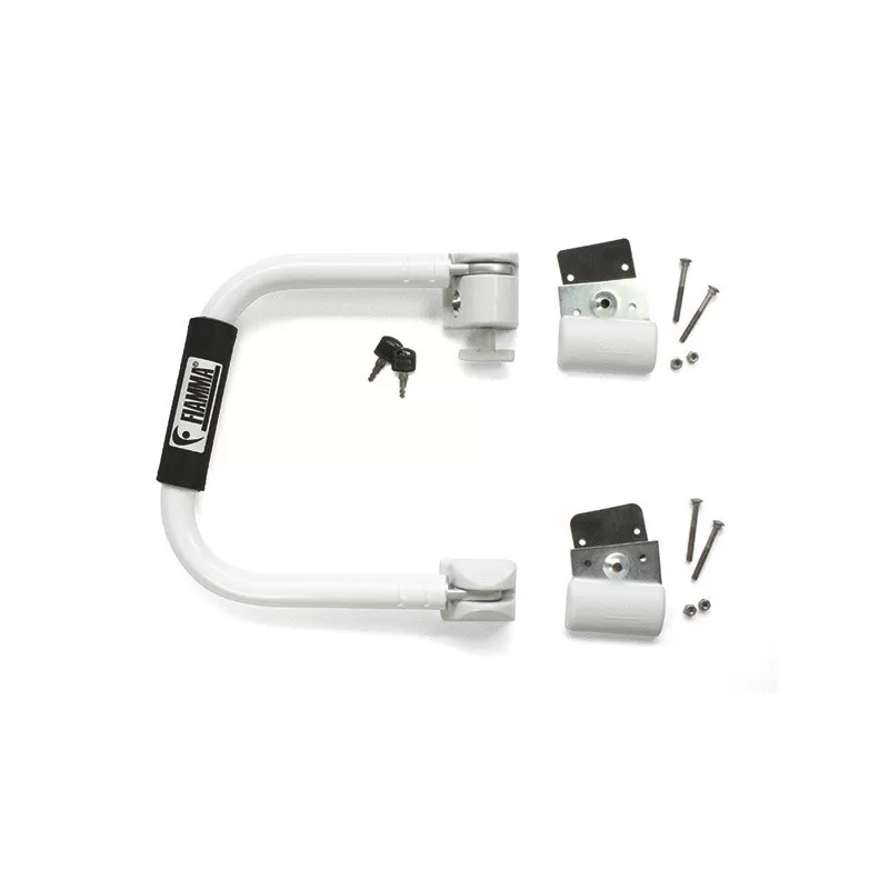 Pour sécurisé encore plus ce dispositif, nous vous conseillons l’installation du FIAMMA Security Lock qui est une serrure suplémentaire maintenant solidement la main-courante bien fermée.