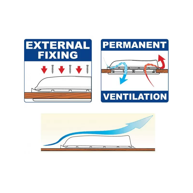 Le FIAMMA Vent 40 Crystal a été conçu et développé pour le camping-car & le fourgon aménagé, ce lanterneau de forme aérodynamique s’adapte sur tout type de toit de 2,5 à 5 cm, y compris sur les toits de fourgon et utilitaire aménagé. Il peut remplacer votre ancien lanterneau dont l’ouverture est de 39 x 39 cm à 42 x 42 cm.