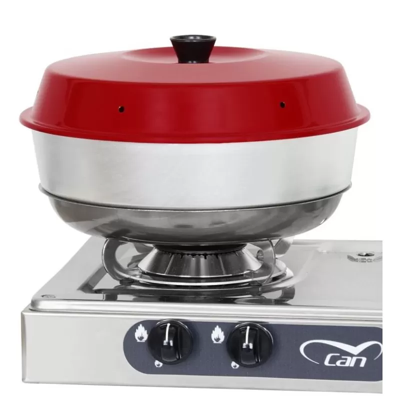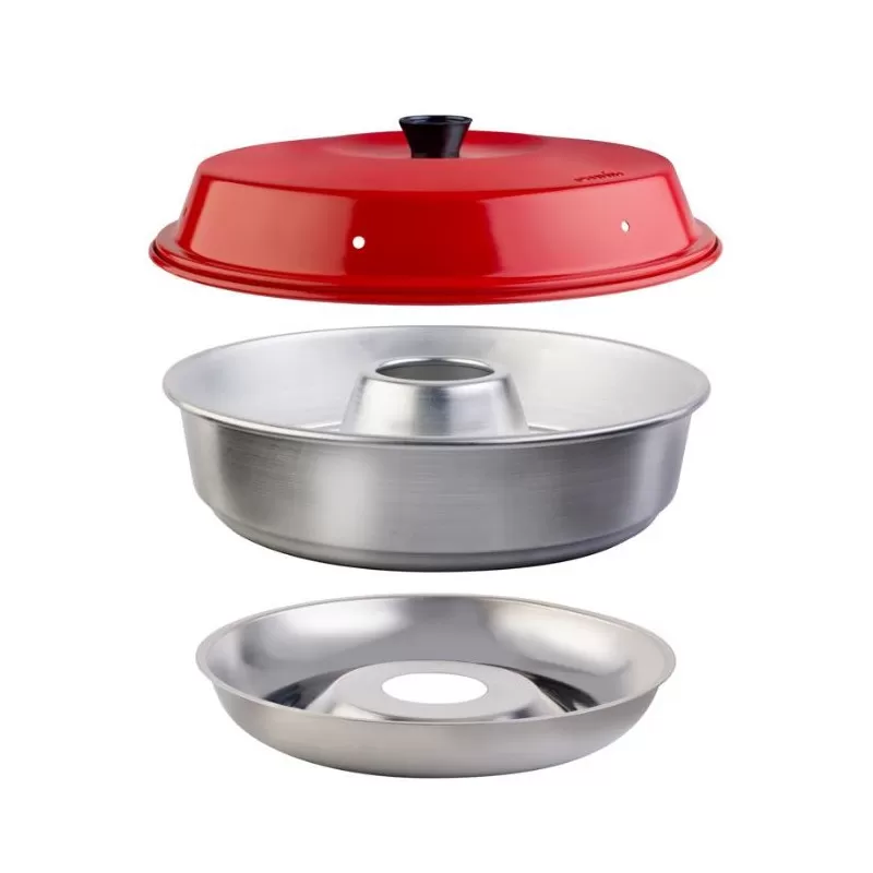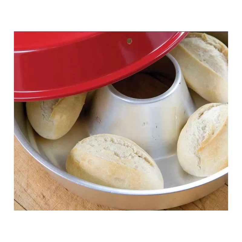 Equipement très pratique pour la cuisine en camping-car, fourgon aménagé et bateau ce cuiseur OMNIA permet la conception et la cuisson de gâteaux, cakes et pains sur un réchaud à flammes classique. Son principe de fonctionnement est simple : la chaleur se propage uniformément par convection grâce à un trou central et des aérations sur le couvercle. La cuisson est donc douce et ne brûle pas les aliments.
