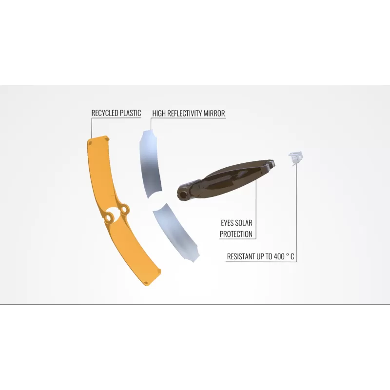- Matériaux : ABS recyclé, Polycarbonate recyclé, miroir S-ReflecT©