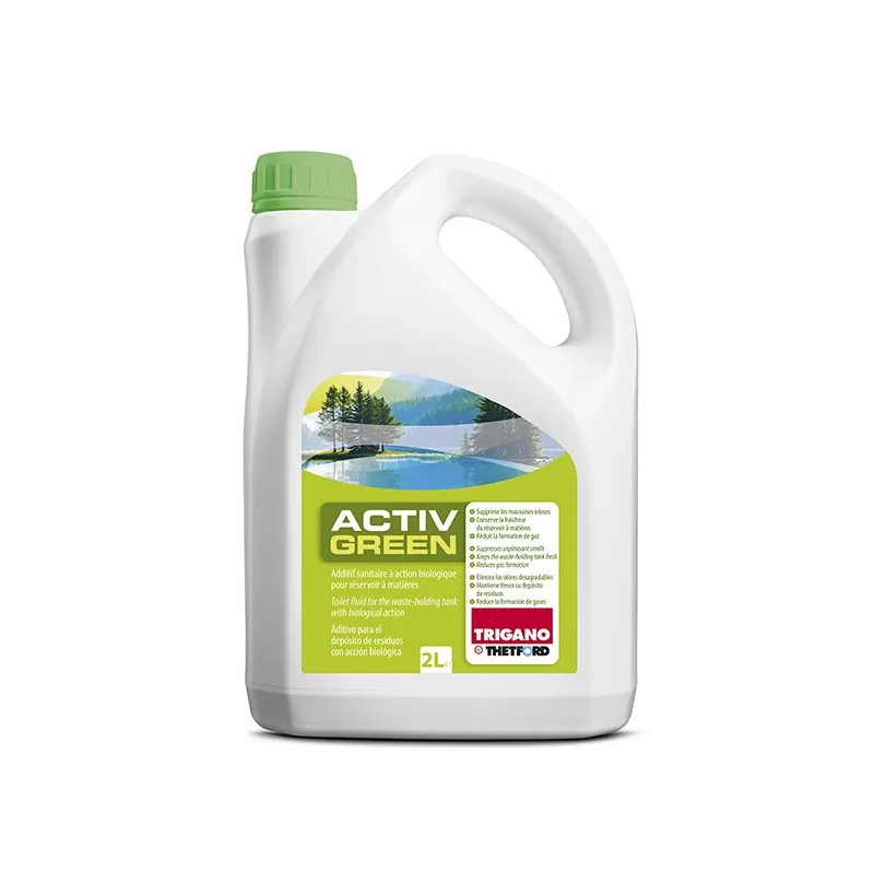 Produit d’entretien WC chimique, biodégradable Activ Green permet de liquéfier les matières et d’éliminer les gaz et odeurs désagréables émanent des toilettes chimiques montées à bord des bateau et camping-car.